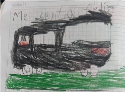 Cuando se les preguntó a los niños qué sintieron durante el viaje, Adriel respondió: «Sentía sueños» (comunicación personal, 8 de abril de 2022). Esto lo acompañó de dos dibujos de un carro, y continuó diciendo: