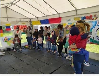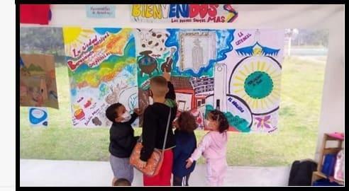 Ahora bien, frente a la construcción de la identidad y el sentido de pertenencia que Joseanny y Adriel han construido, el segundo menciona: «Esto es Venezuela, aquí nacimos nosotros, ustedes no se acuerdan porque están muy pequeños, pero yo sí recuerdo, aquí hay muchos pajaritos y hay muchos ríos, aquí en Soacha no hay ríos» (comunicación personal, 15 de abril de 2022). Esta narrativa de Adriel se la decía a otros niños más pequeños que invitó a uno de los talleres, en el cual se celebró el Día de la familia. Allí se creó un ambiente relacionado con Venezuela; había música, imágenes y platos típicos. En este espacio se logró ver a los niños como transmisores de cultura.