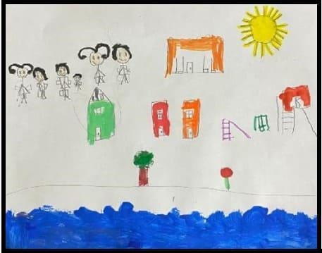 Figura 4. Dibujo de Adriel en el taller artístico: 100 kilómetros de historia.